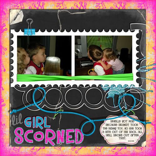 The kit used on this layout is Funky Princess by Nikki and Jen @ Elemental Scraps. The "lil" alpha is Scriptybet by Erin Keith.